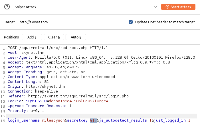 /squirrelmail (Status: 301) [Size: 315] [--> http://skynet.thm/squirrelmail/]