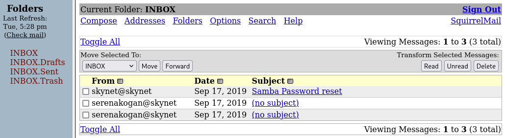 /squirrelmail | 301 | http://skynet.thm/squirrelmail/ | Accessible |